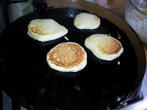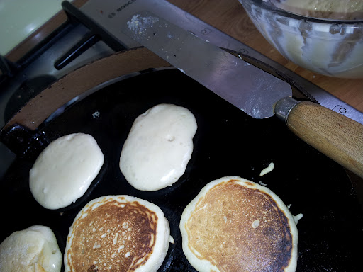 I have made pikelets on my cast iron skillet but its so much easier on a griddle iron because it has no sides so makes flipping easy. It is difficult with gas to keep the temperature down far enough and the iron seems to get hotter and hotter so you have to make sure you keep monitoring the temperature.