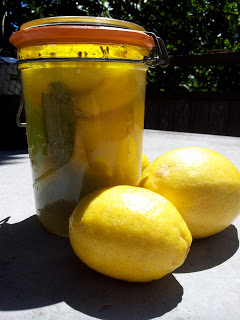 In my previous posting I talked about preserving lemons. I found my lemons and squeezed as many as I could into this lovely French glass jar I got for free from a second hand store. I am now prepared for when lemons become scarce.