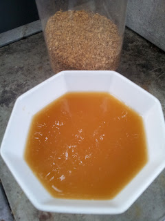 | Juice that gathers in the bottom bucket should be used every 2 days. The juice indicates how successful your fermentation is. It should be a light brown, not smell too pungent and could have a light white mould on top as above. |