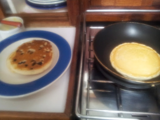 With a nod to Shenandoah’s American connection we prepared pancakes for breakfast. I do make a particularly good oat hotcake or pancake but it does use two bowls, has quite a few ingredients and requires an egg beater. All too time consuming and difficult on a boat.