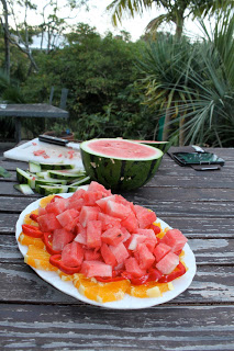 Next pile in the centre the watermelon.