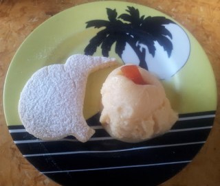 The sorbet has a real tang and is smooth. The tang goes really well with the sweet shortbread. Ginger biscuits or a couple of brandy snaps are also excellent partners for the sorbet. |