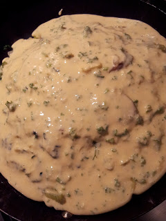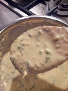 Beat until smooth. Add a generous handful of chopped parsley, 3 cloves of garlic finely chopped and 50g of grated cheddar or parmesan cheese. Salt and pepper to taste.