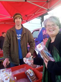 Market Chef, Alison Lambert, demonstrates how to create delicious, no fuss ways of using the produce at the market. Alison has amazing energy and passion about regional and fresh food. I managed to have a brief exchange with her and sampled a delicious way of using cabbage in a novel way – inside a galette.