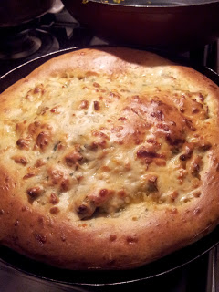 To achieve the best results you really need a caste iron pan that can go into a hot oven. I don’t have my iron pans up here but I do have an excellent thick steel pan about 23cm so I slightly modified the recipe to deal with this. You can use ceramic or metal dishes but to get an excellent crust you really need the heat retention that caste iron delivers.