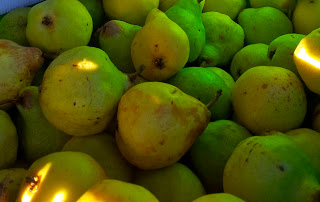 I am always on the lookout for a different variety of apple or pear to try. My favourite organic fruit supplier will take the time to talk flavours of the fruit he sells. He told us that the above pears were grown on pear stock and that most pears are grown on quince stock. Why? Because pears take longer to grow than a quince… so I couldn’t resist a small bag of what he calls Choral Pears.