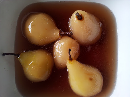 Whole Pears Poached in QBF Liqueur