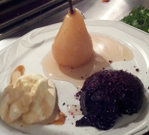 | I presented the sorbet and the pears with something creamy which could be cream or ice cream and you have a spectacular QBF dessert, |