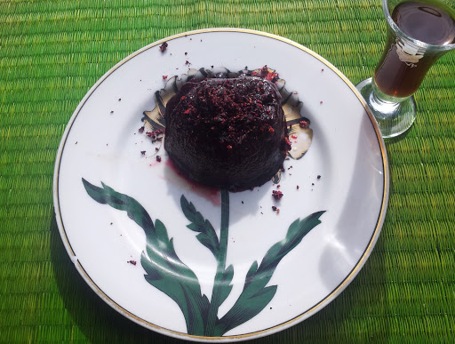 | The speckles on the plate are freeze dried blackcurrant crumbs. |