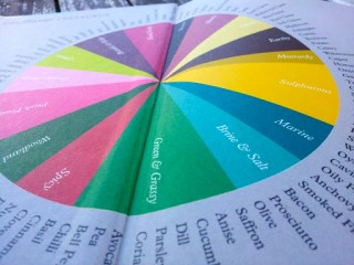 After a massive amount of research Niki has come up with a unique guide on flavour combinations shaped into a colour wheel of flavours. She limited herself to 99 foods and the wheel is made up of 16 flavour categories: Fresh Fruity, Bramble and Hedge, Marine, Brine and Salt, Green and Grassy, Earthy, Floral Fruity, Citrussy, Creamy Fruity, Roasted, Meaty, Cheesy, Mustardy, Sulphurous,Woodland, and Spicy.