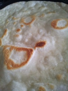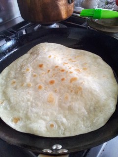 When you flip the bread it will bubble up transforming it from what looks like a piece of cardboard into a delicous lively looking flat bread.