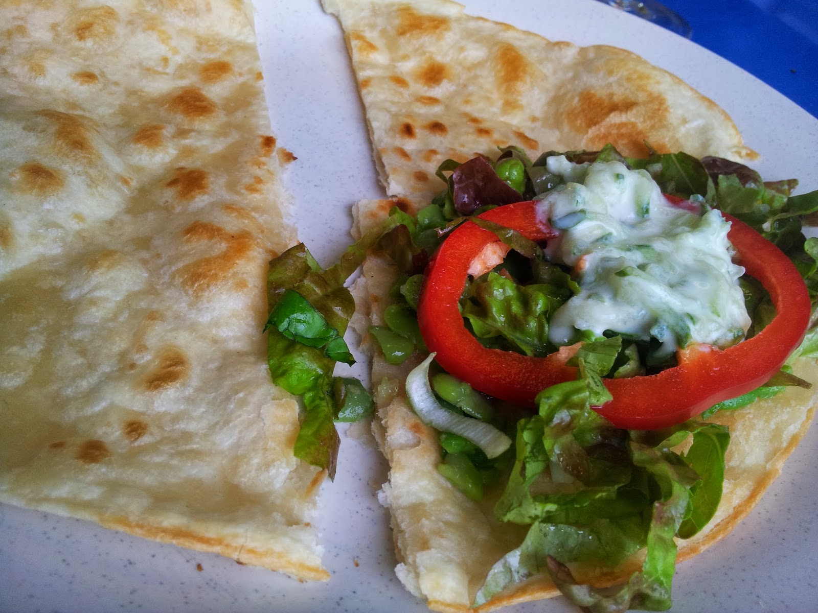 Roti, flatbread or mountain bread are all delicious when cooked with a little oil. Consider using these to bring some leftovers to life. We have this at least once a week and is very useful if you have to get some food on the table quickly. Three year old Beau loves loading up his flatbread triangles.