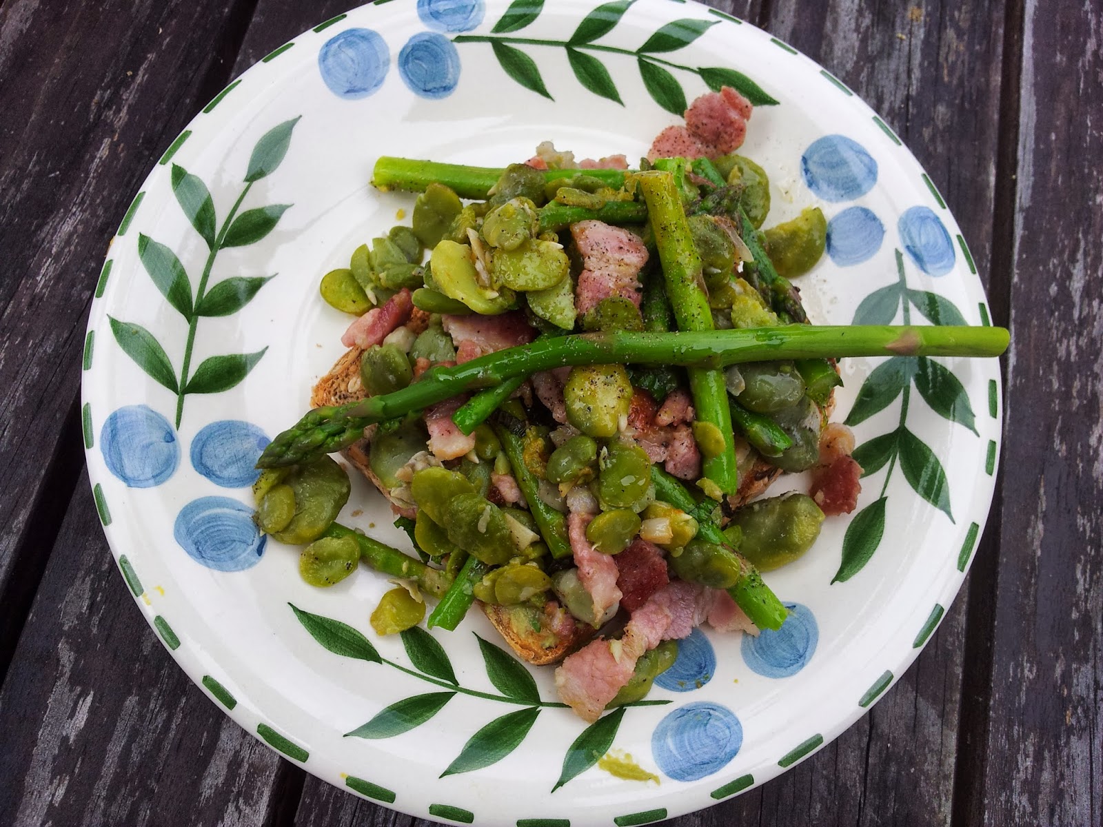 As I only had a few leftover skinned beans on this occasion I added some asparagus spears. Beans and asparagus work well together. |