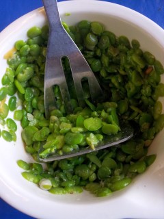The much maligned broad bean of our childhood is experiencing a resurgence in popularity and this could be due to the process of skinning the bean. Blogger Nancy Harmon Jenkins thinks this trend was created in the professional kitchens of France and is not at all necessary. I will let you decide.