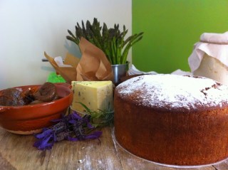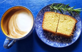 | Jackie’s Rustic Semolina Lemon and Rosemary cake in the foreground. |