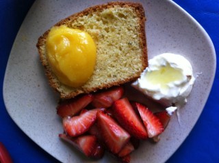 I presented the cake as a dessert with marinated strawberries, lemon curd and mascarpone with Lemoncello liqueur.
