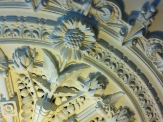 A long table was set up in a spacious elegant room that reminds us of the style and craftmanship that went into quality villas after the turn of last century. The most stunning feature is the ornate plaster ceiling with sunflowers.