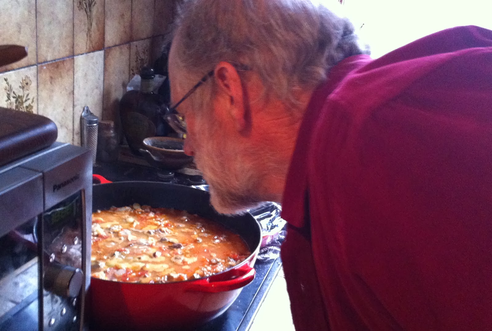 Dinner guest Matt is giving the Cassoulet the smell test – verdict… smells fantastic!