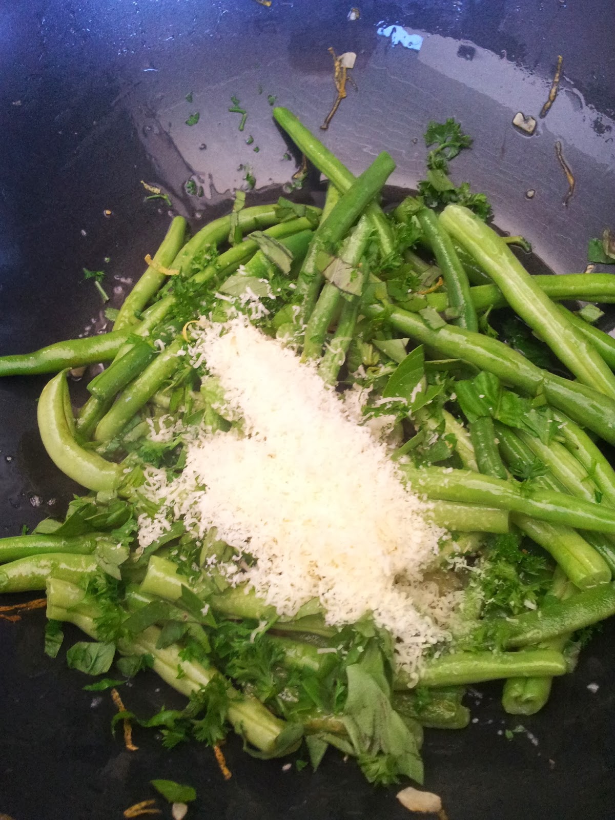 If you want to add a little heat then a crushed dried or finely sliced fresh chilli will add a zing. You could serve this with some fresh coriander instead of the parsley, peanut oil with a few drops of sesame oil but would cut out the parmesan to create this Asian take on the beans.