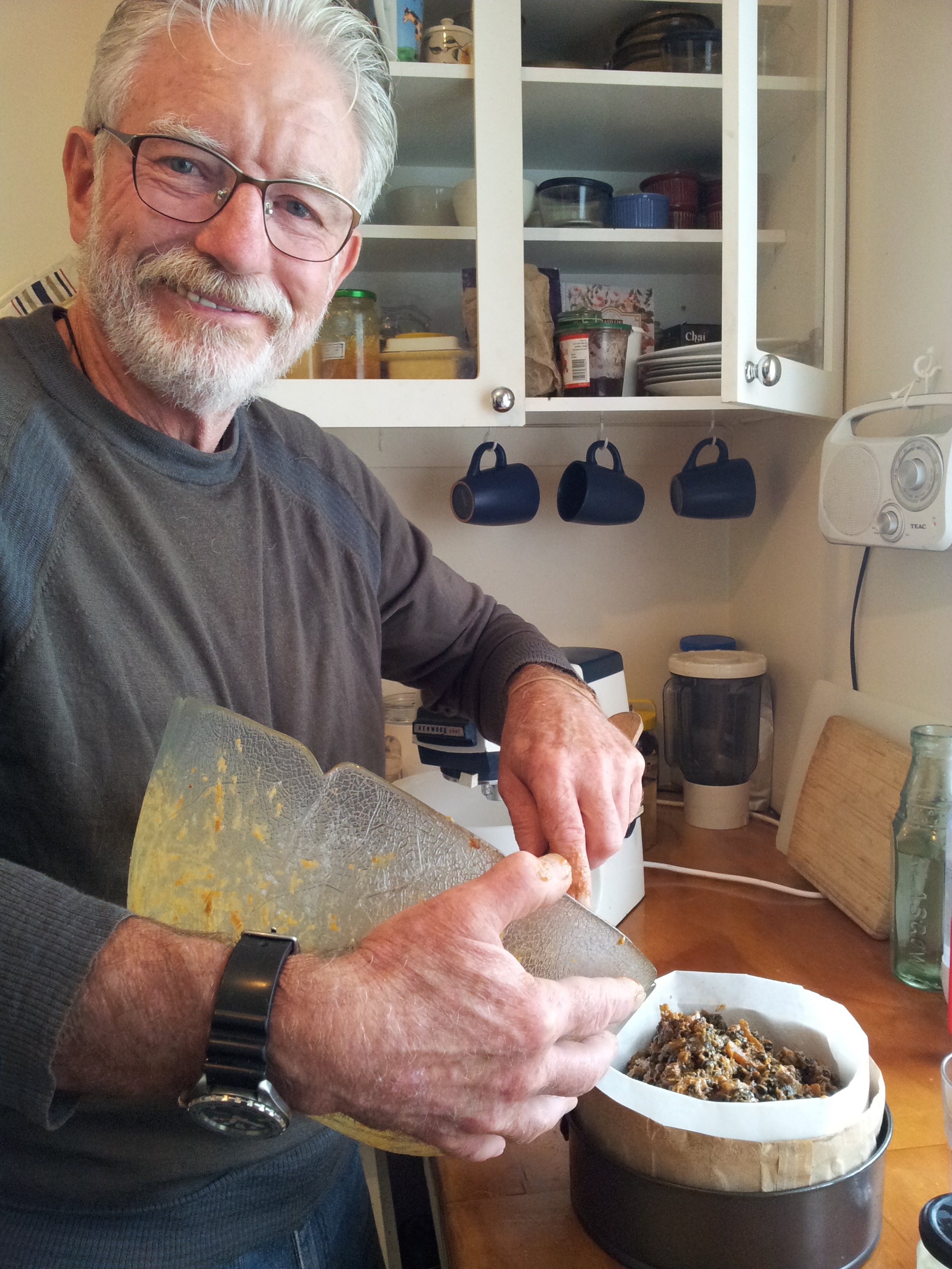 In our house my husband Peter usually makes the Christmas cake – now that’s a tradition I am happy to encourage. The Christmas cake is a big baking number where failure is expensive and long lived. Anyone visiting the house over the holiday period will be offered a piece of this cake. Kudos or embarrassment? The tension about the cake is only relieved on Christmas Eve when keeping to tradition we cut the first slice.