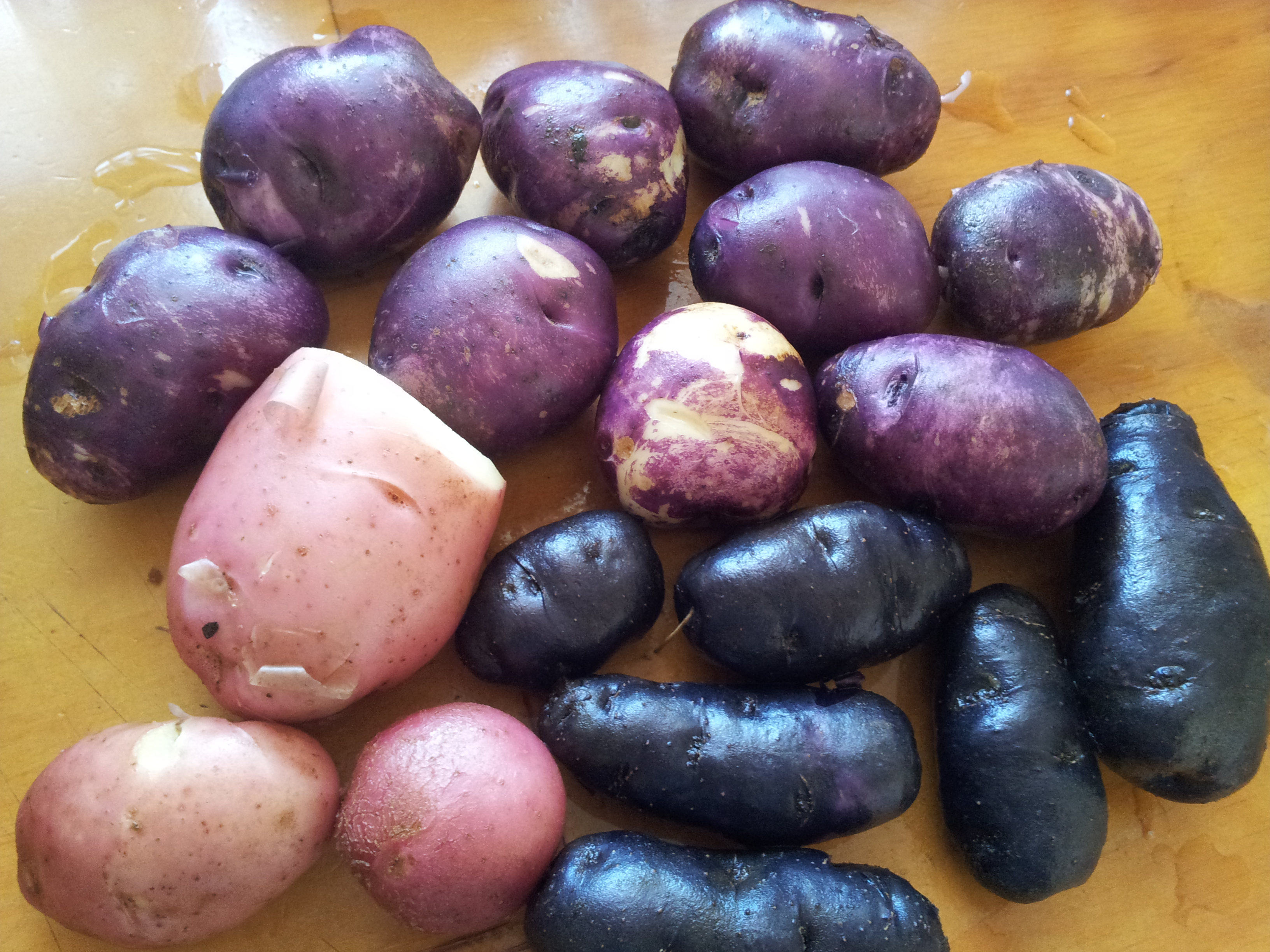 The cooked potatoes do loose some of the intense colour – all except for the purple sausage shaped Urenika.