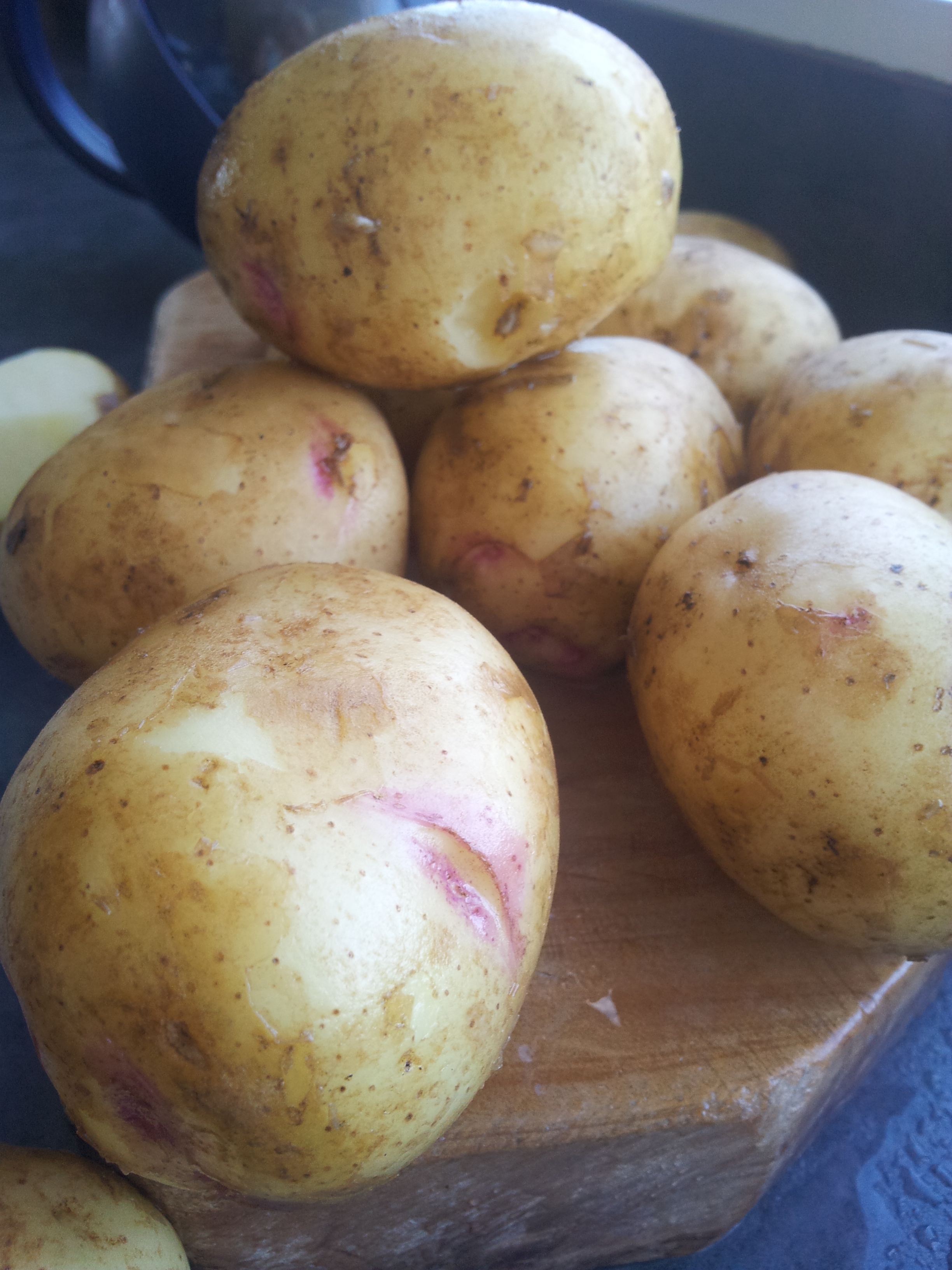 You know if your new potato is freshly dug – just rub the skin with your finger and if it peels off it means the potato hasn’t long been out of the ground. This is one of the main reasons you want to grow at least some new potatoes in your own garden.