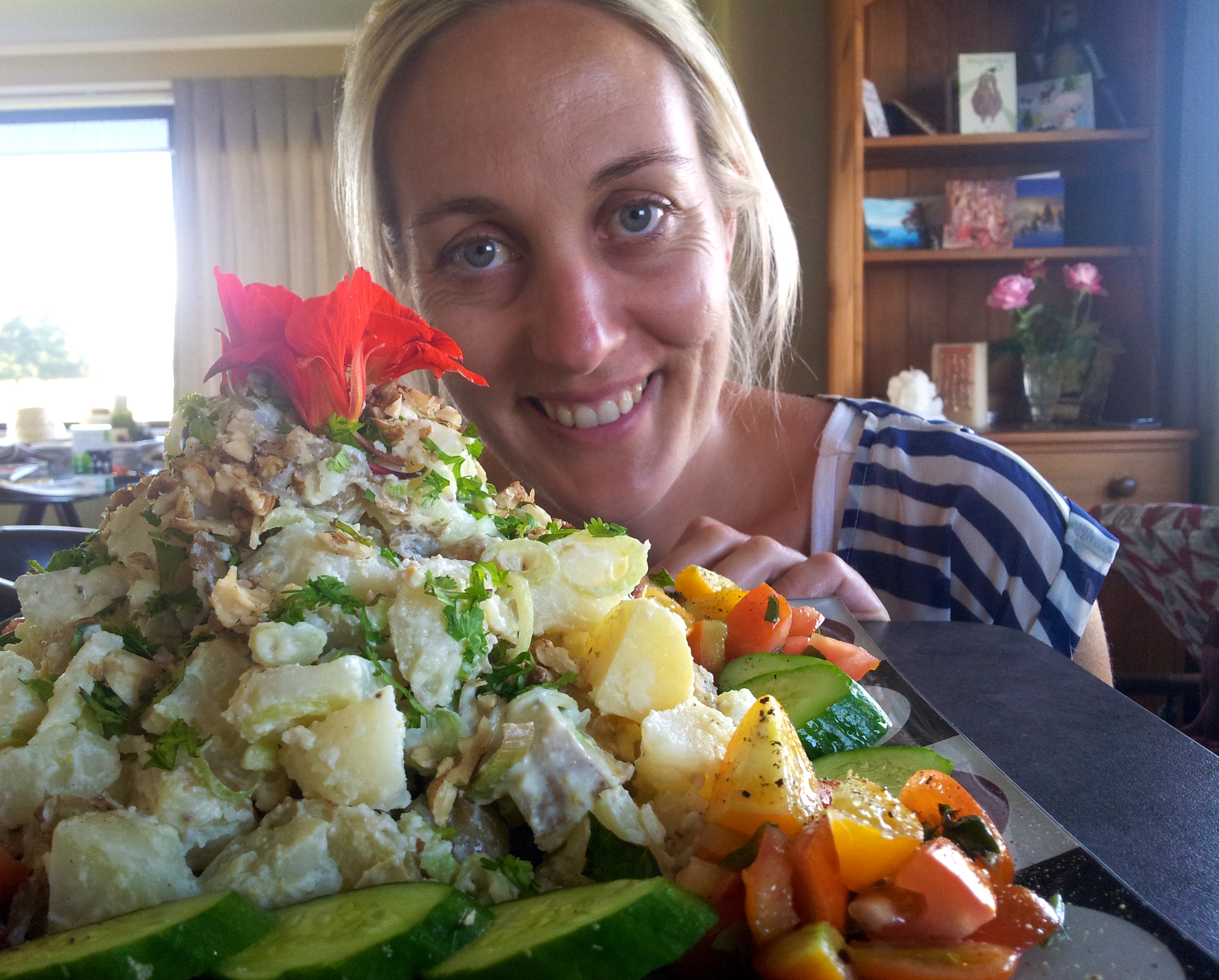 My niece Sarah was my advisor when it came to decorating my potato salad mountain for a barbecue dinner with the family in Napier. I have discovered that potato salad is particularly good to eat if you are consuming bbq meats….more on why later