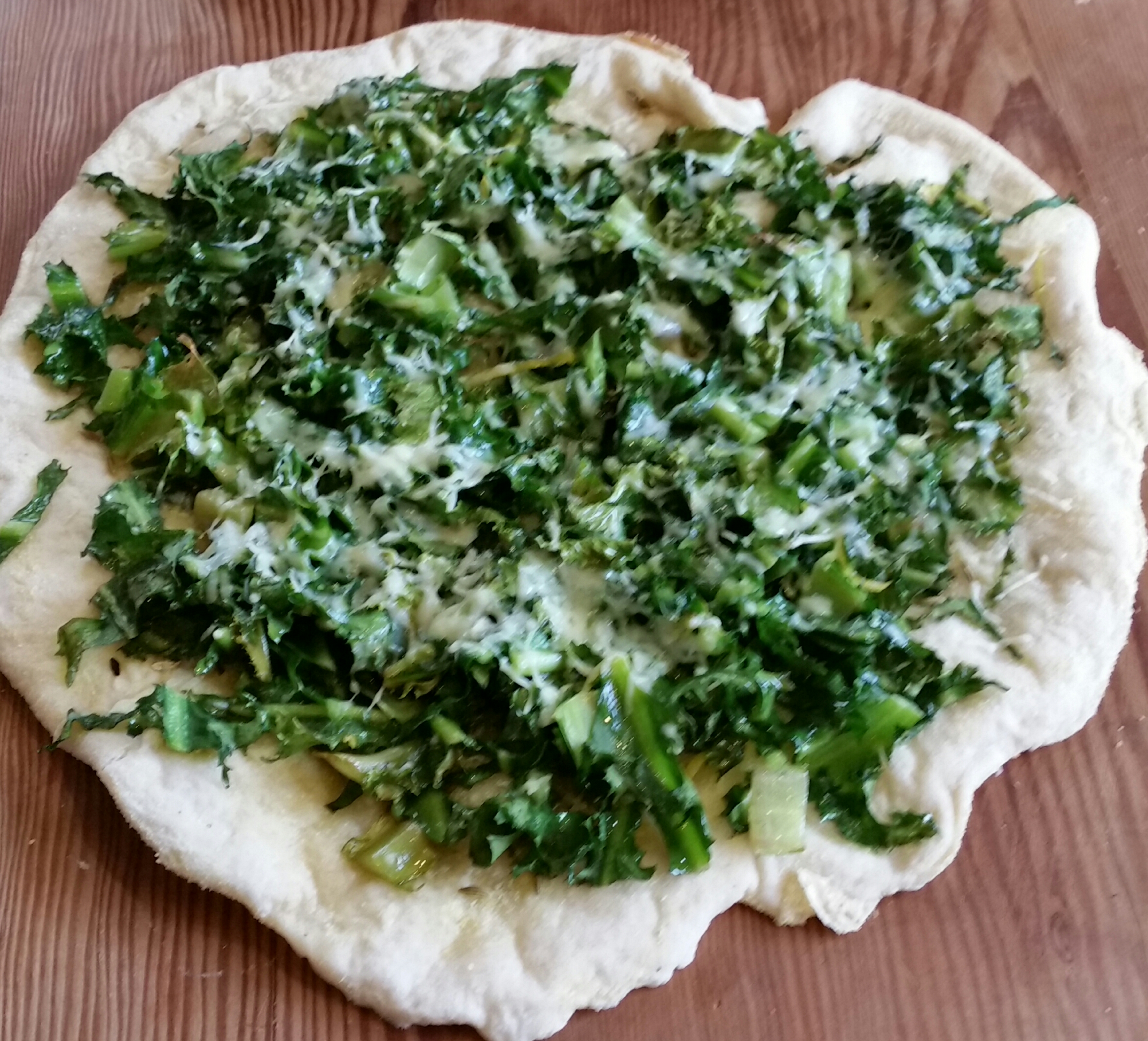 However, this recipe nearly completely cooks the base before adding the curly endive topping. I usually add a slathering of oil and a sprinkle of either fennel seeds or thyme leaves.