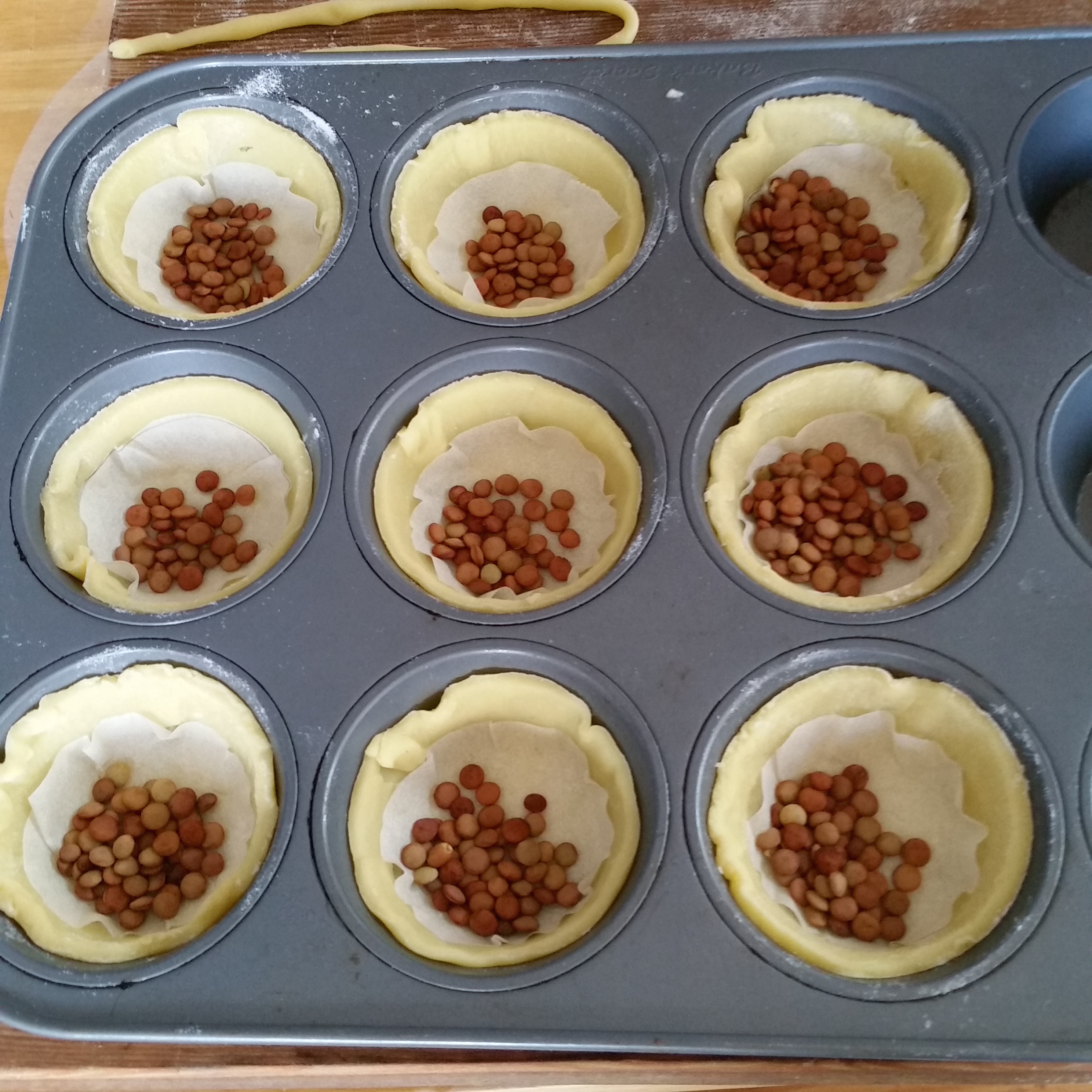 Mould the pastry into the base of the patty pans and place in the fridge to rest for 30 minutes.