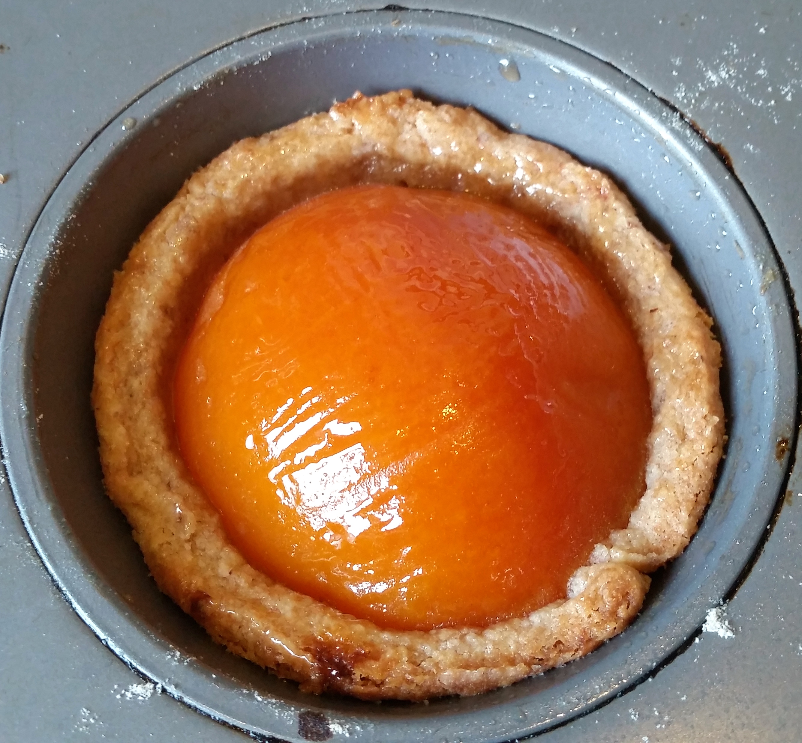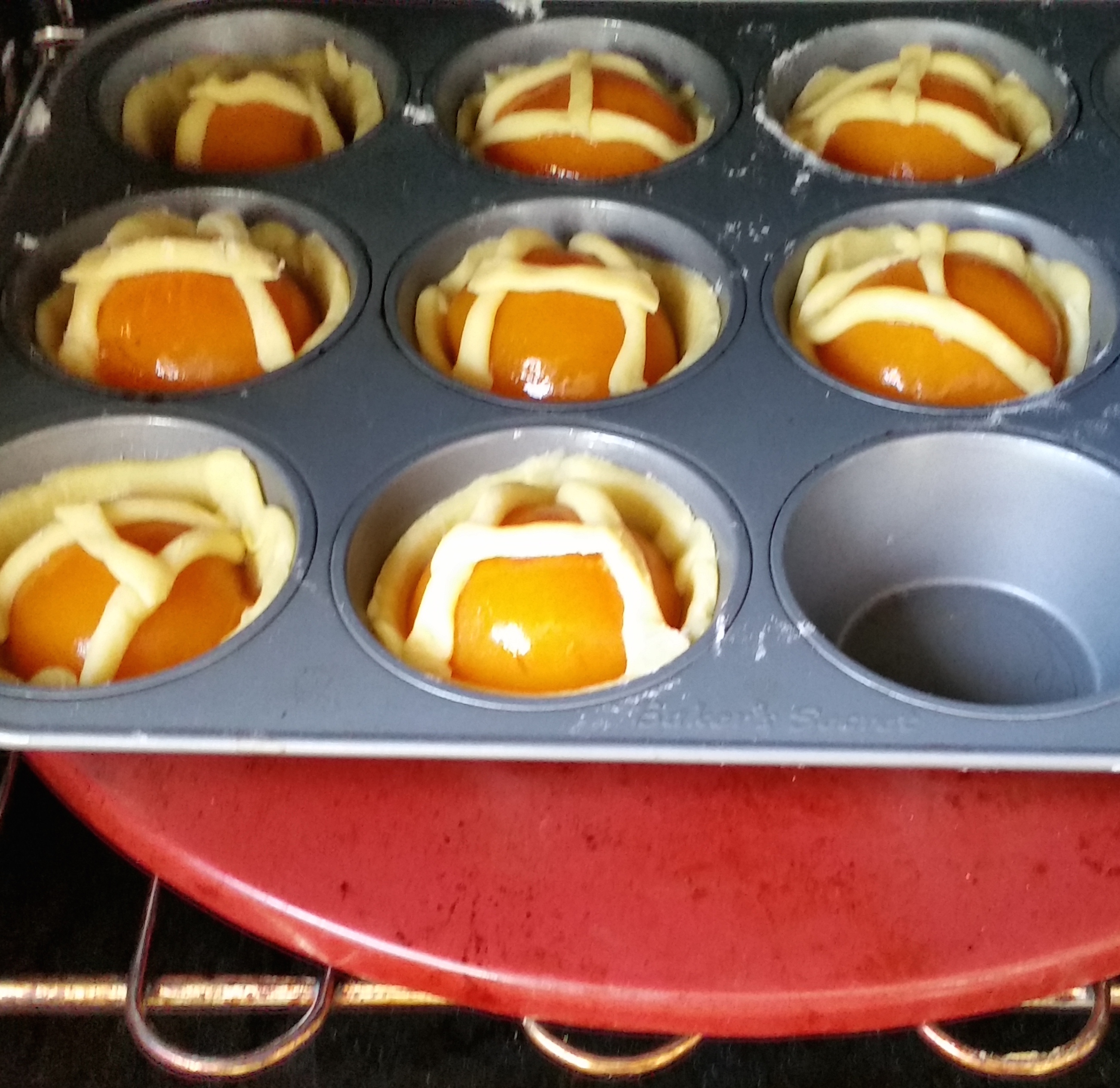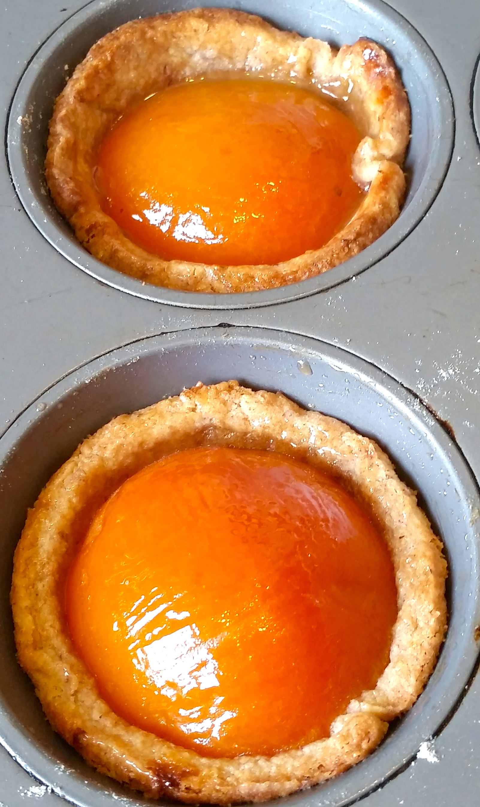 These were the blind baked pastry cases. You bake them for 10 minutes then pop in an apricot and continue cooking for another 10 minutes. These have been glazed after cooking.