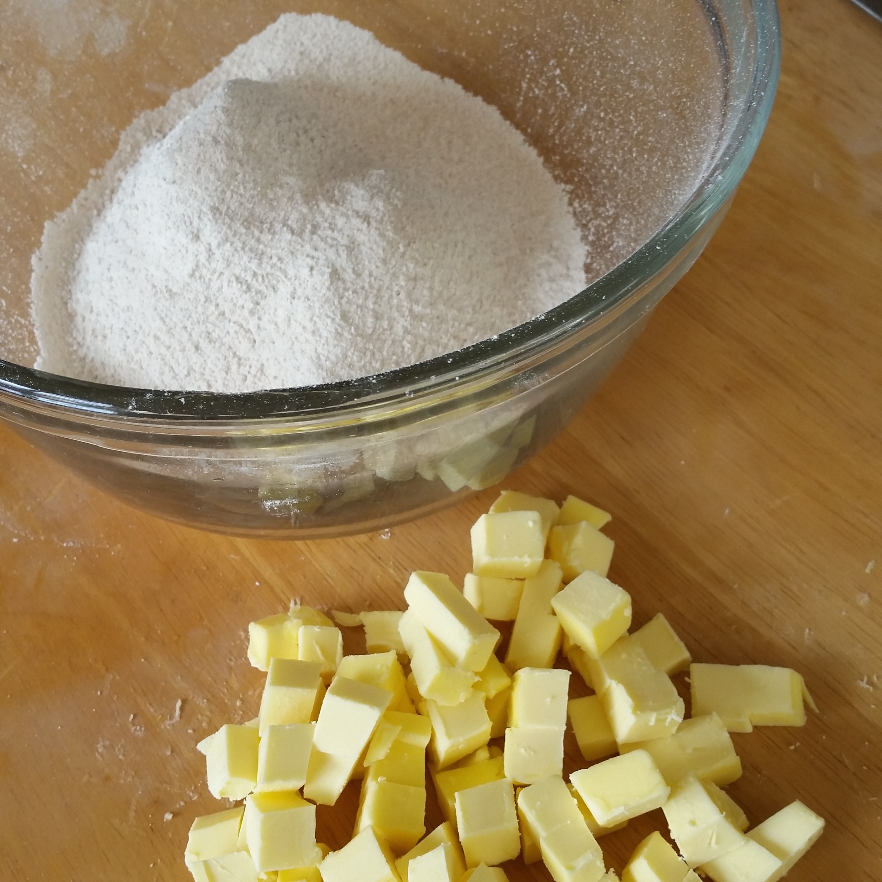 The flour I used this time for the recipe is a wholemeal spelt flour. I wanted to see if spelt would create lighter pastry cases than if I had used standard flour. (Always use a low gluten flour for short pastry – avoid high grade.)