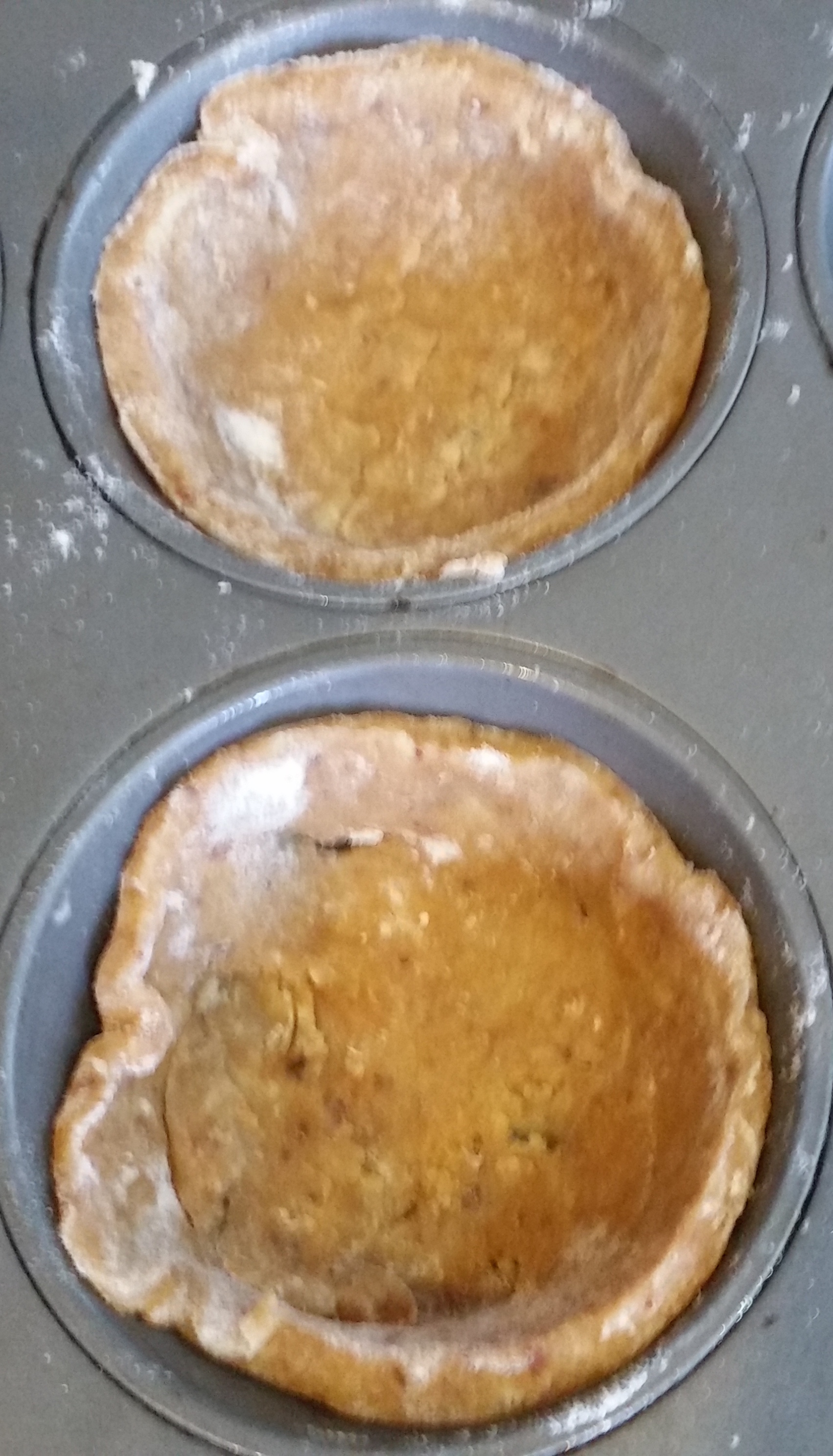 Gus suggested I use the screw top lid from the apricots to cut out the tarts that fit into a muffin tin. This is the ready made store bought pastry I used. I also used the jar cutter to even up the circles I rolled a little from the disks of homemade almond pastry.If you wanted to bake these to be used as cooked pastry shells for fresh fruit tarts, then just prick with a fork to help keep the pastry flat.