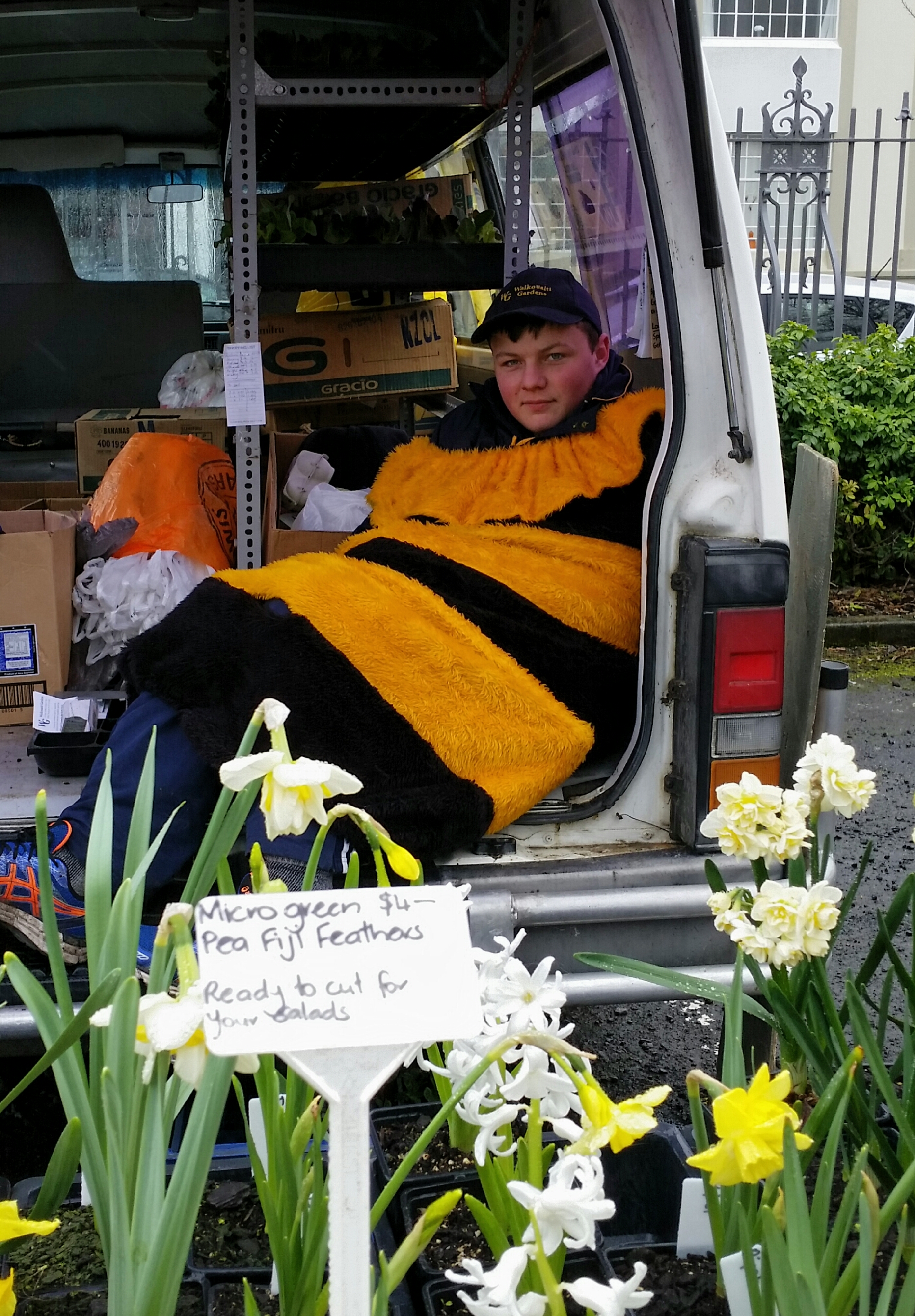 This young man of Waikouaiti Gardens was quite over being a bee sheltering in the van towards the end of the morning.