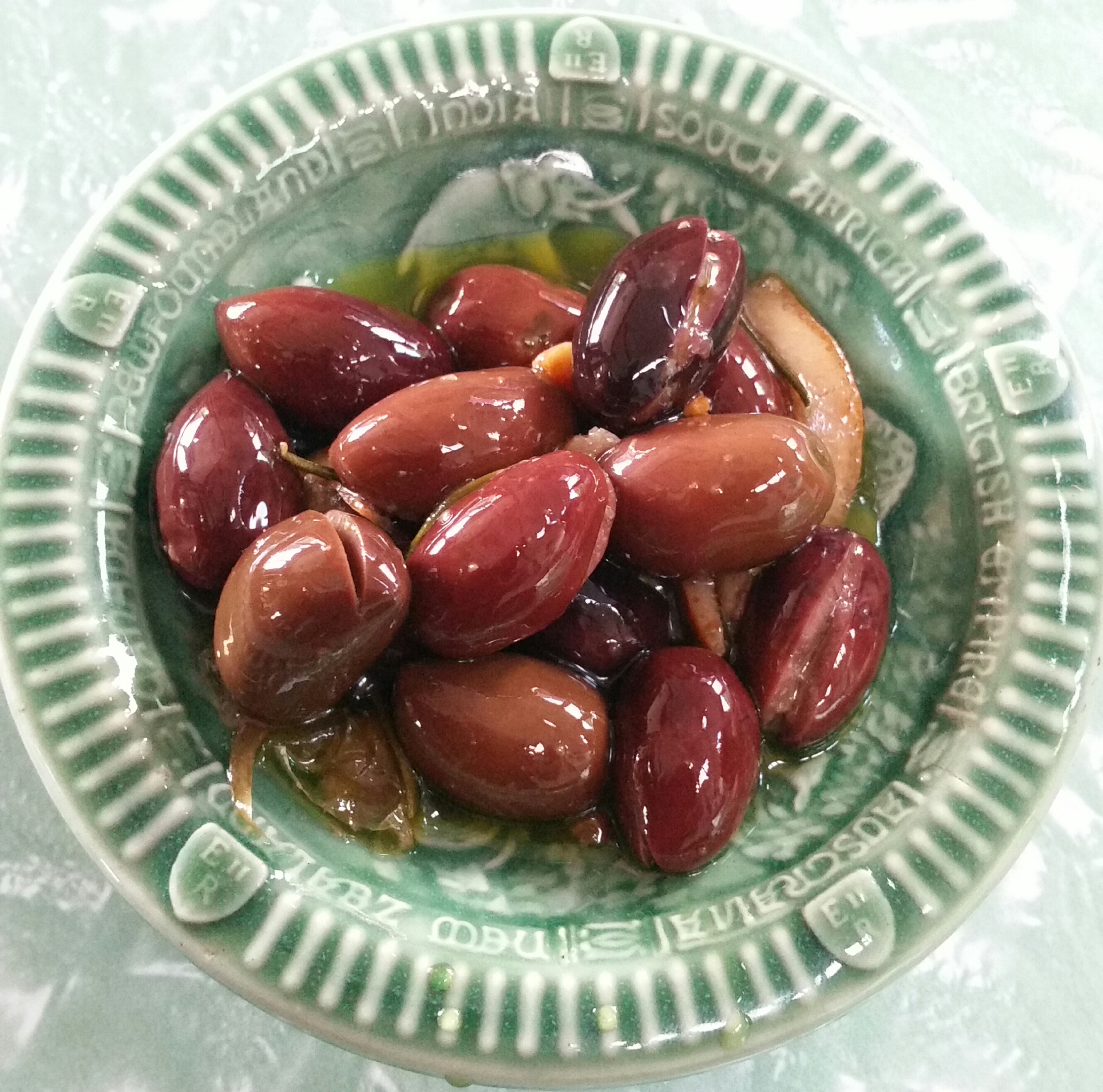 I chose Kalamata olives that came in a large plastic container – you want good olives but often there are bargains if buying in bulk.