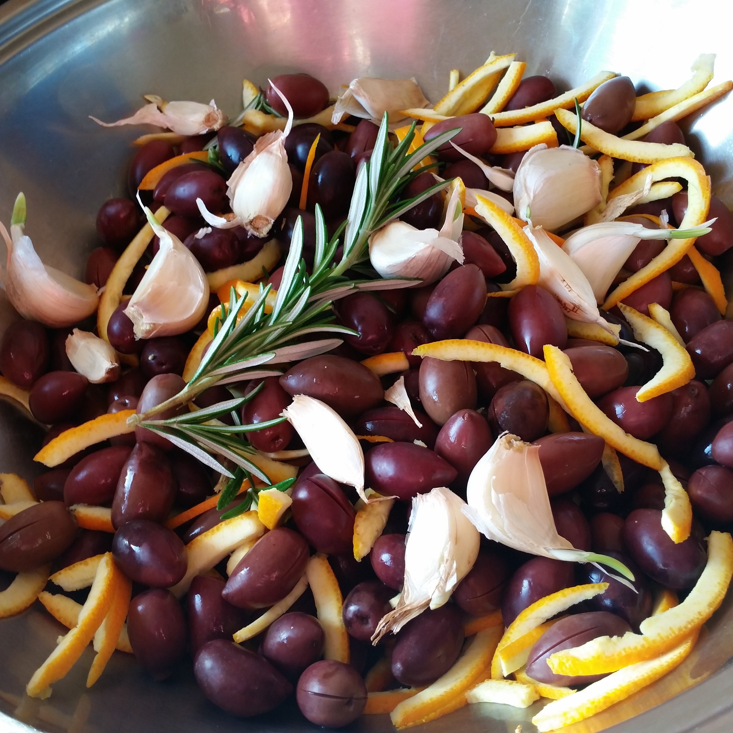 1 kg olives in brine (don’t use pitted olives but you can use any variety you like)