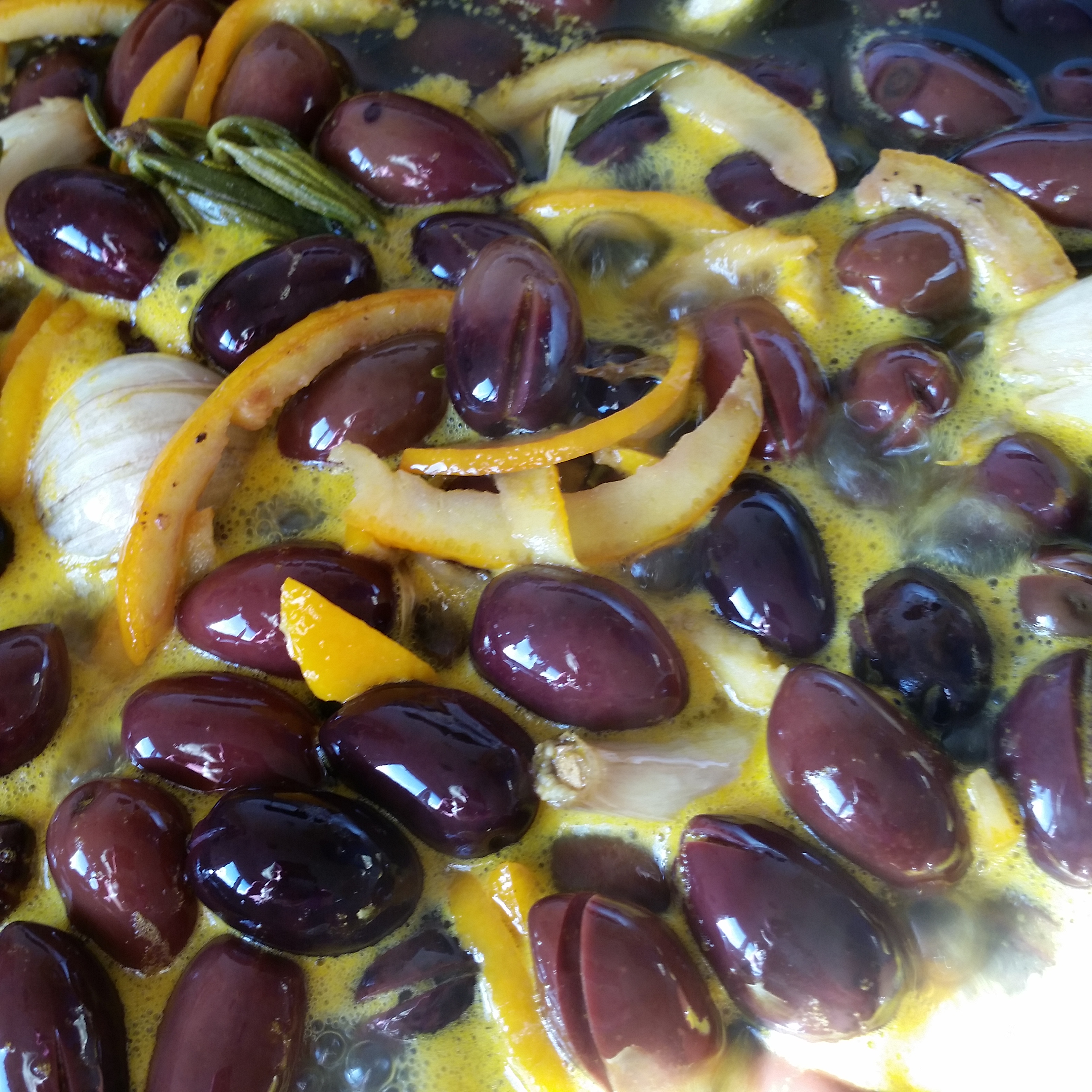 With Christmas just a couple of months away its time for me to think about what edible gift I could make for family and friends. A simple recipe I discovered transforms ordinary olives in brine into big flavoured olives by roasting in oil and other flavours.
