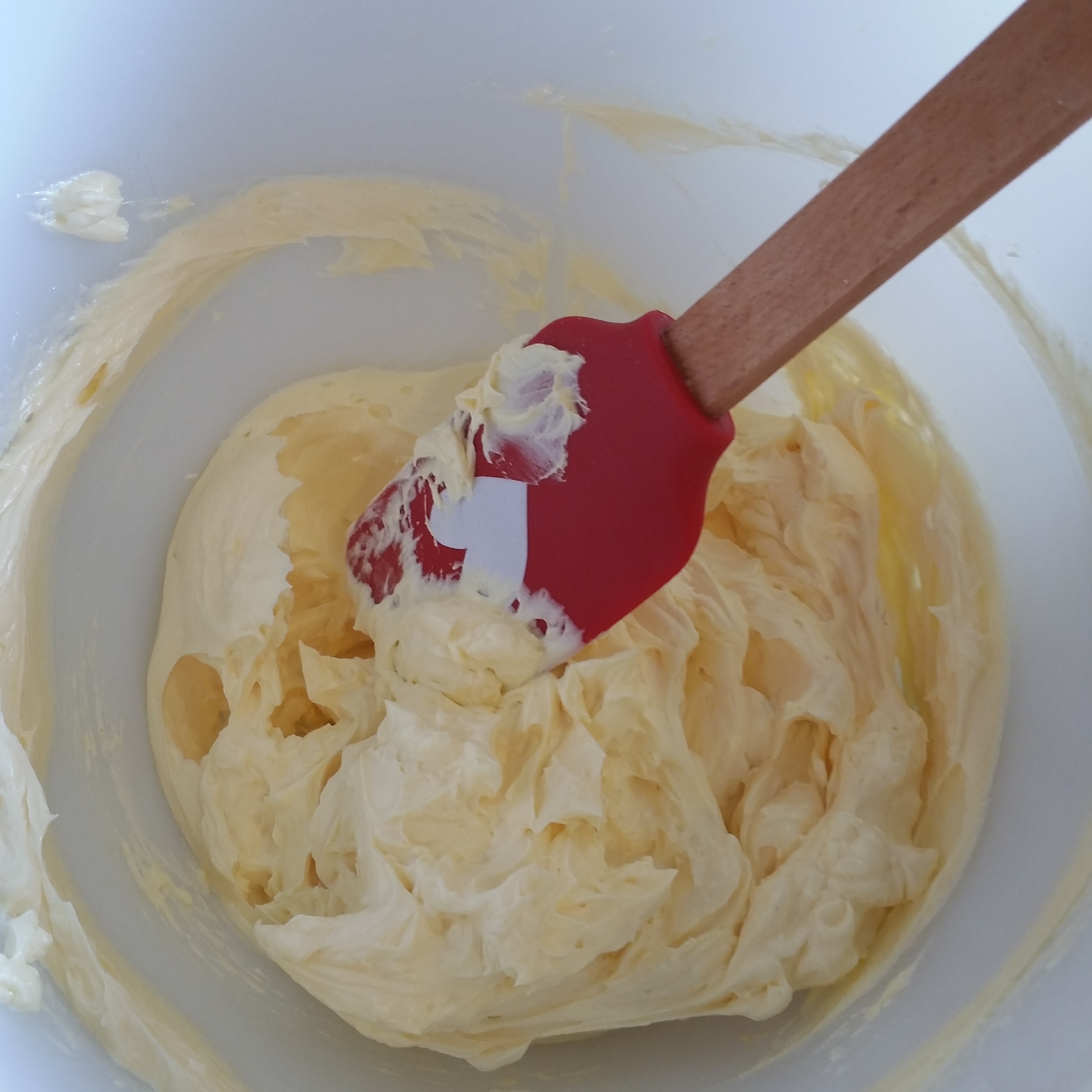 It’s much easier to use a cake mixer, but you can opt for a bit of a workout and beat with a wooden spoon. Add the eggs one at a time. To prevent curdling add 1 Tbsp of the flour measurement with the second egg.